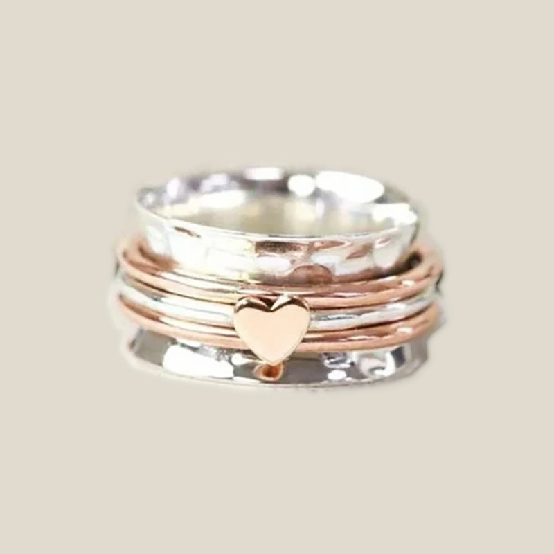 European and American personality all-match decompression rotating two-color peach heart ring love horn ring female wholesale