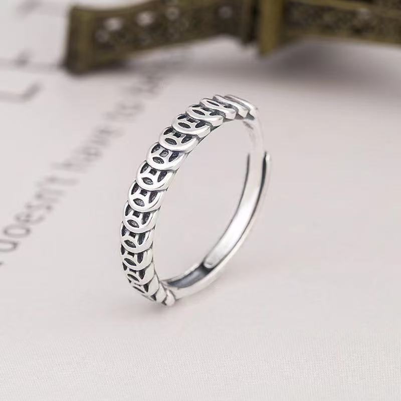 Vintage old Thai silver coin women's ring personalized design light luxury niche copper open ring manufacturers wholesale