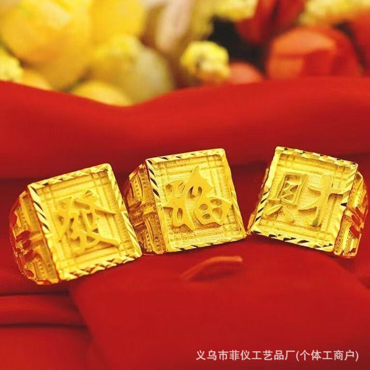 genuine goods Vietnam Sha Jin Men's Ring 24 Gold Store Aggressive Opening Fu Fa Long Word Ring Gold Color Boss Ring