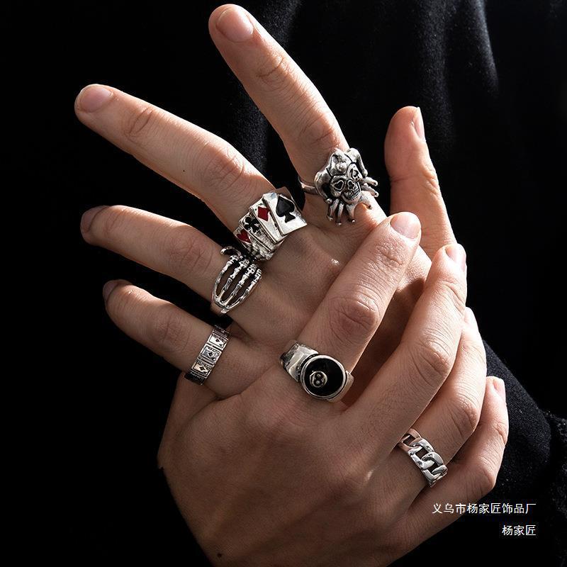 Men's Punk Exaggerated Skull Ghost Claw Poker Clown Number 8 Round 6-Piece Ring Set Men's Ring