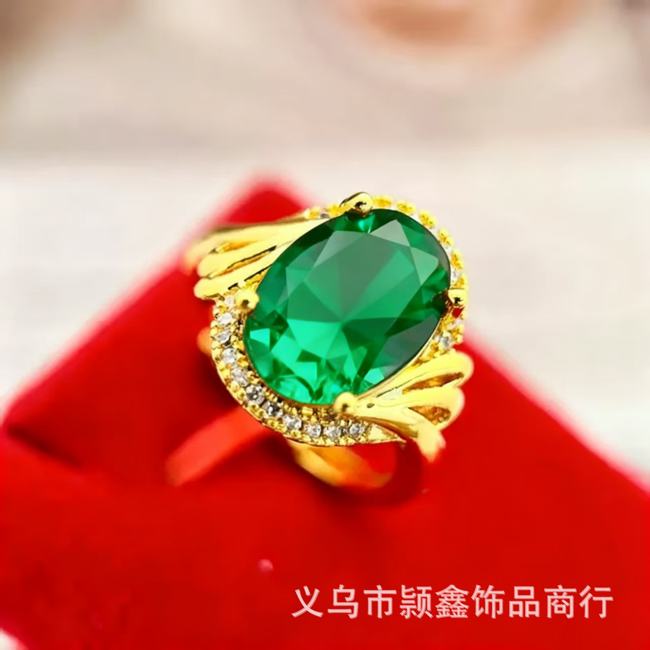 Live Broadcast Hot Selling Gold-Plated Ruby Ladies Ring Niche Imitation Tourmaline Diamond Ring Inlaid Imitation Jade Open Ring for Women