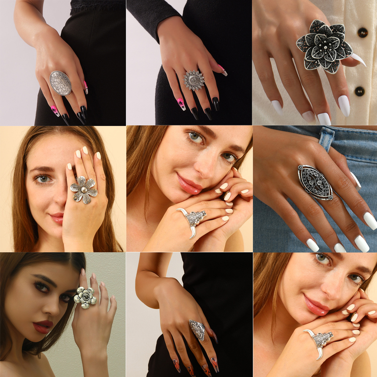 Retro Simple Flower Ring Bohemian Metal Style Cross-Border Hot Selling Butterfly Love Flower Ring Wholesale for Women