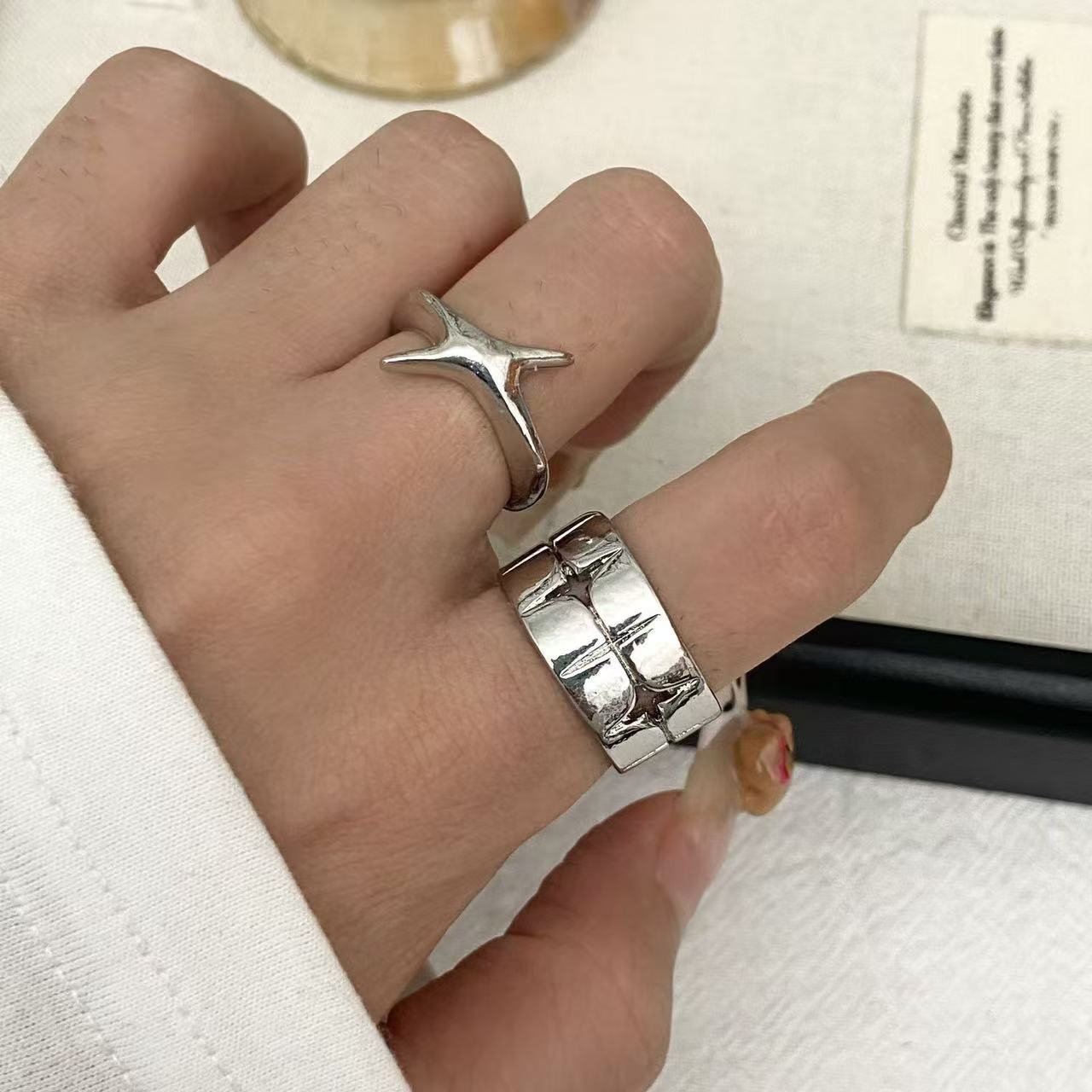 Shining Star Light New High-End Cool Style Couple Ring Open Silver Wide Version Stacking Ring