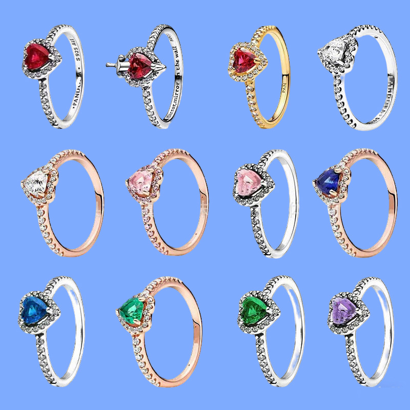 Cross-border dedicated to Pangadora White Copper Shining Red Heart Ring Love Pink Diamond Rose Gold Multicolor Ring for Women