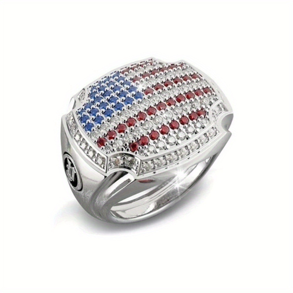 Ruipai Cross-Border Fashion American Independence Day American Flag White Golden-Plated Ring Factory Direct Sales Source Factory
