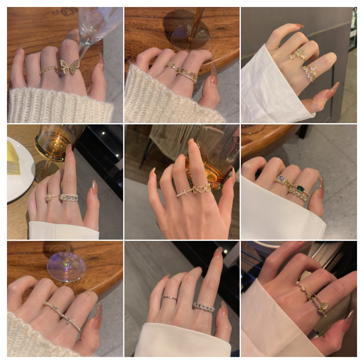 Cross-border New Ins All-match Flash Diamond Multi-layer Nail Ring Niche High-end Fashion Cold Style Zircon Jewelry