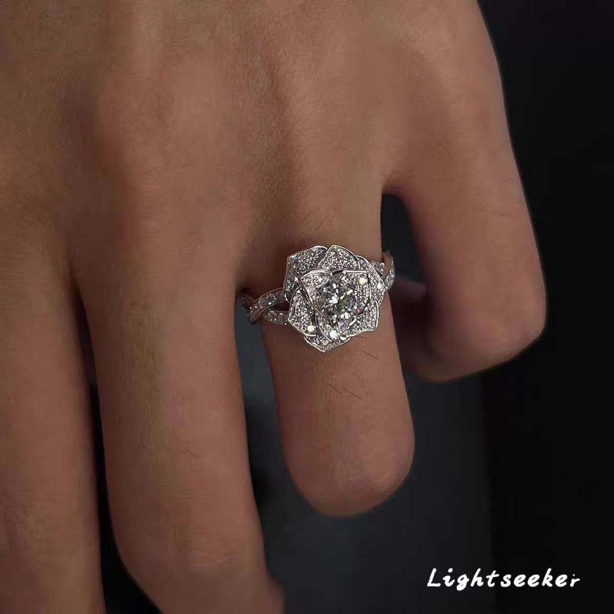 French Retro Single Diamond Rose Ring Women's Fashion Accessible Luxury Exquisite Ring Micro-Paved Zircon High-End Index Finger Ring