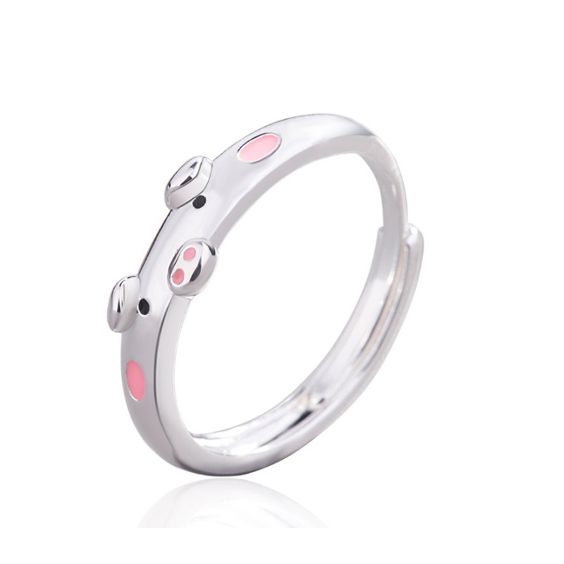 Korean Style Copper Silver Plated Ring Women's Small Fresh Piglet Ring Elegant Cute Animal Opening Finger Ring Accessories