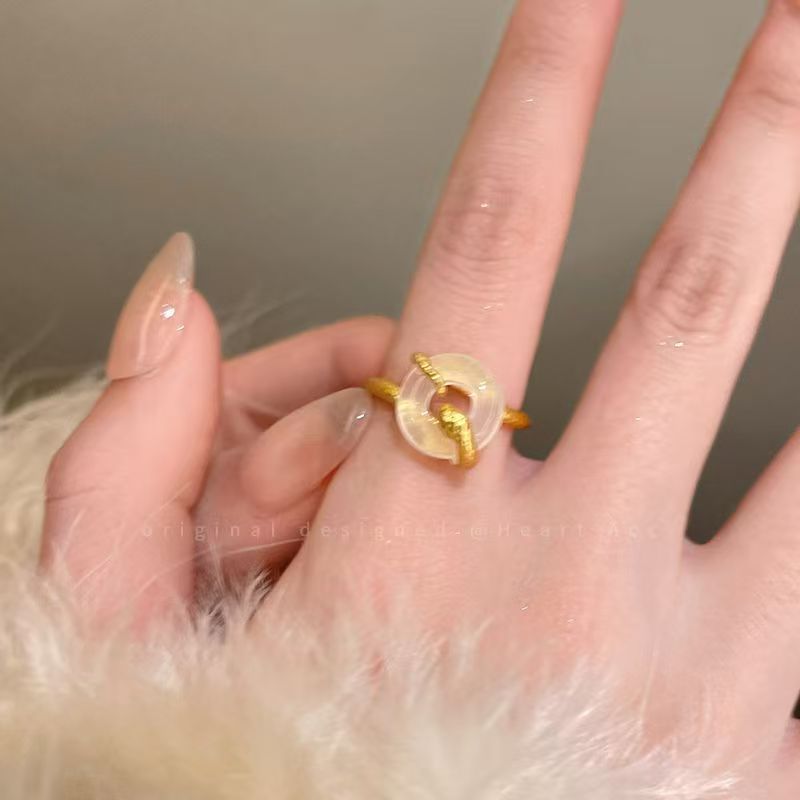 Broken silver natural stone open ring female cold style elegant index finger ring Internet celebrity fashion personality girlfriends ring fashion