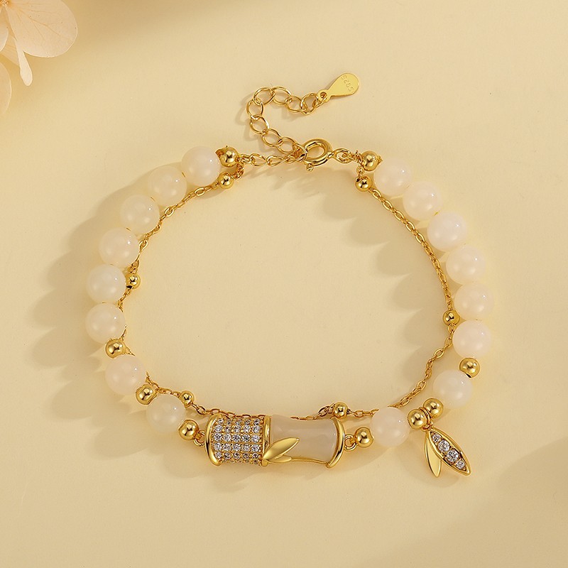 Hetian Jade Bamboo Bracelet for Women 2024 New Model Pure Silver Light Luxury Niche Exquisite Bracelet Birthday Gift for Girlfriend