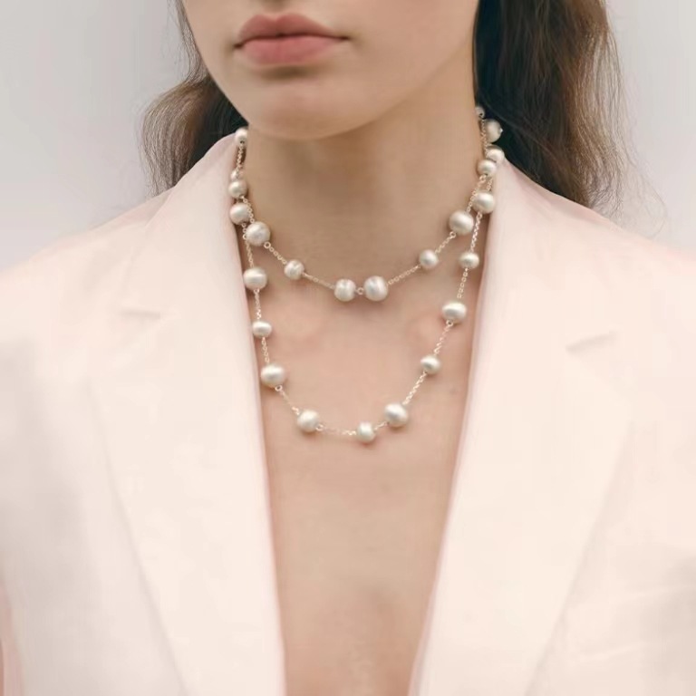 Summer Brushed Necklace Light Luxury Artisan Ball Collarbone Multi-use Stacked Chain Niche Elegant All-match High-grade Necklace for Women