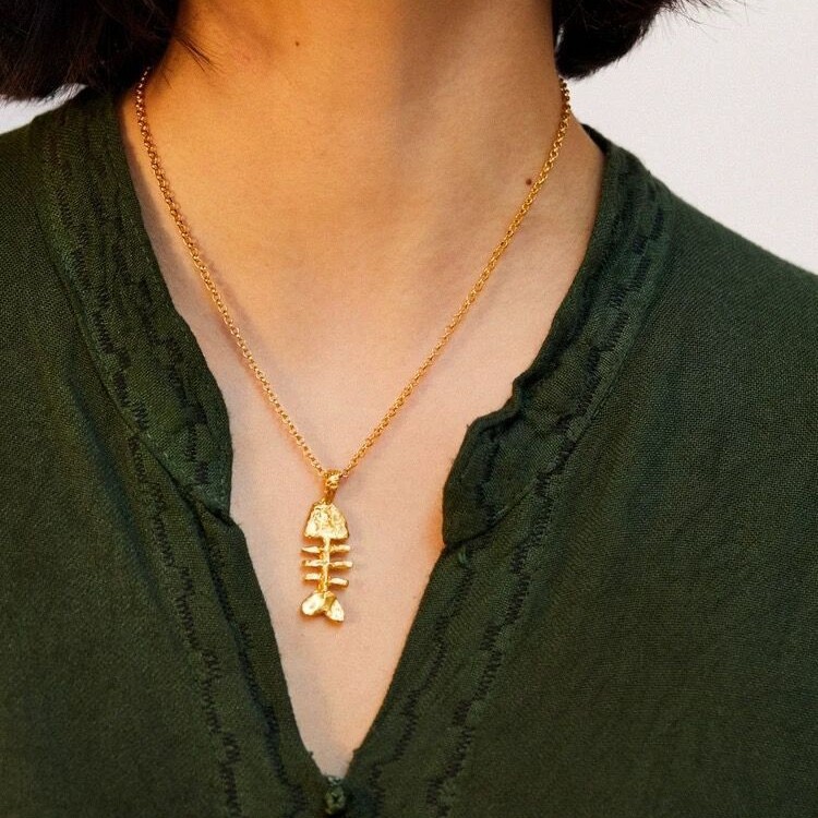 Ali*25 Years of Spring and Summer New Products British Craftsman Niche Brand Simple and Fashionable Brass Gold-Plated Fish Bone Necklace for Women