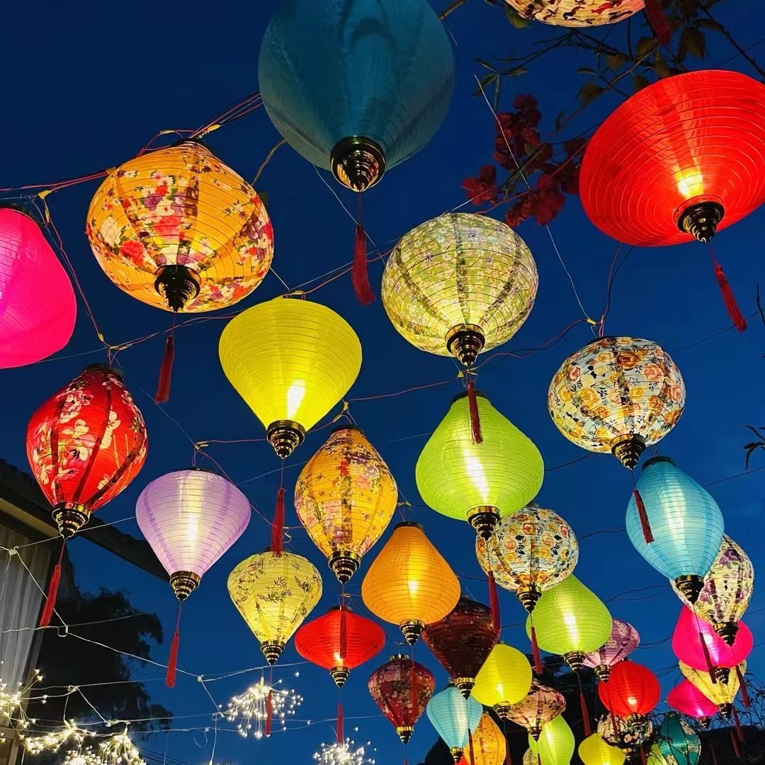 Festival Street Lanterns, Fabric Folding Decorations, Outdoor Waterproof Traditional Vietnamese Lanterns, Diamond-Shaped Lanterns