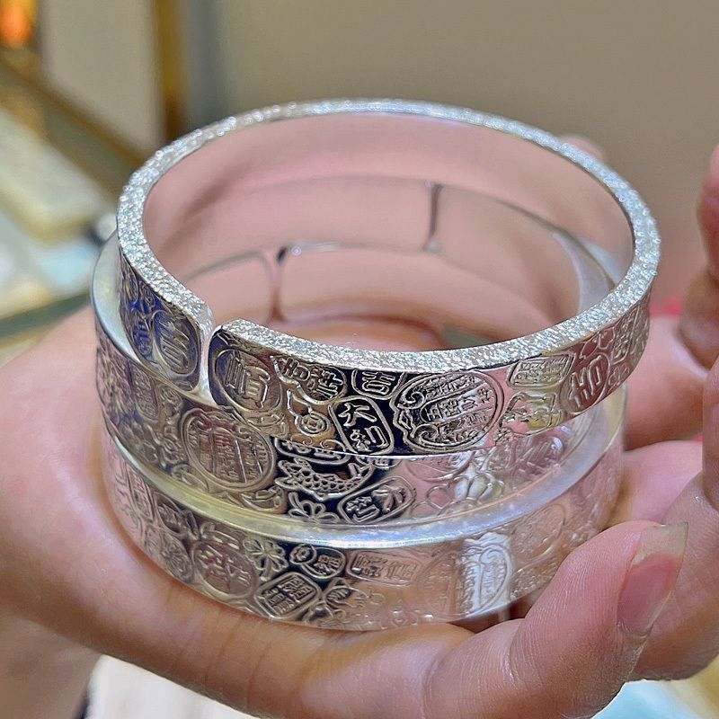 Sterling Silver Craftsman Jiyan Sterling Silver Bracelet Pure Silver 999 Couple Bracelet Engraved Handmade Various Shapes for Men and Women