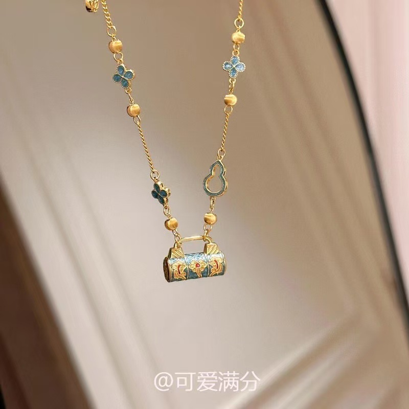 Chinese Style Enamel Oil Drop Longlife Lock Necklace Women's Light Luxury High-end Fashion Elegant Gourd Flower Bracelet New Style