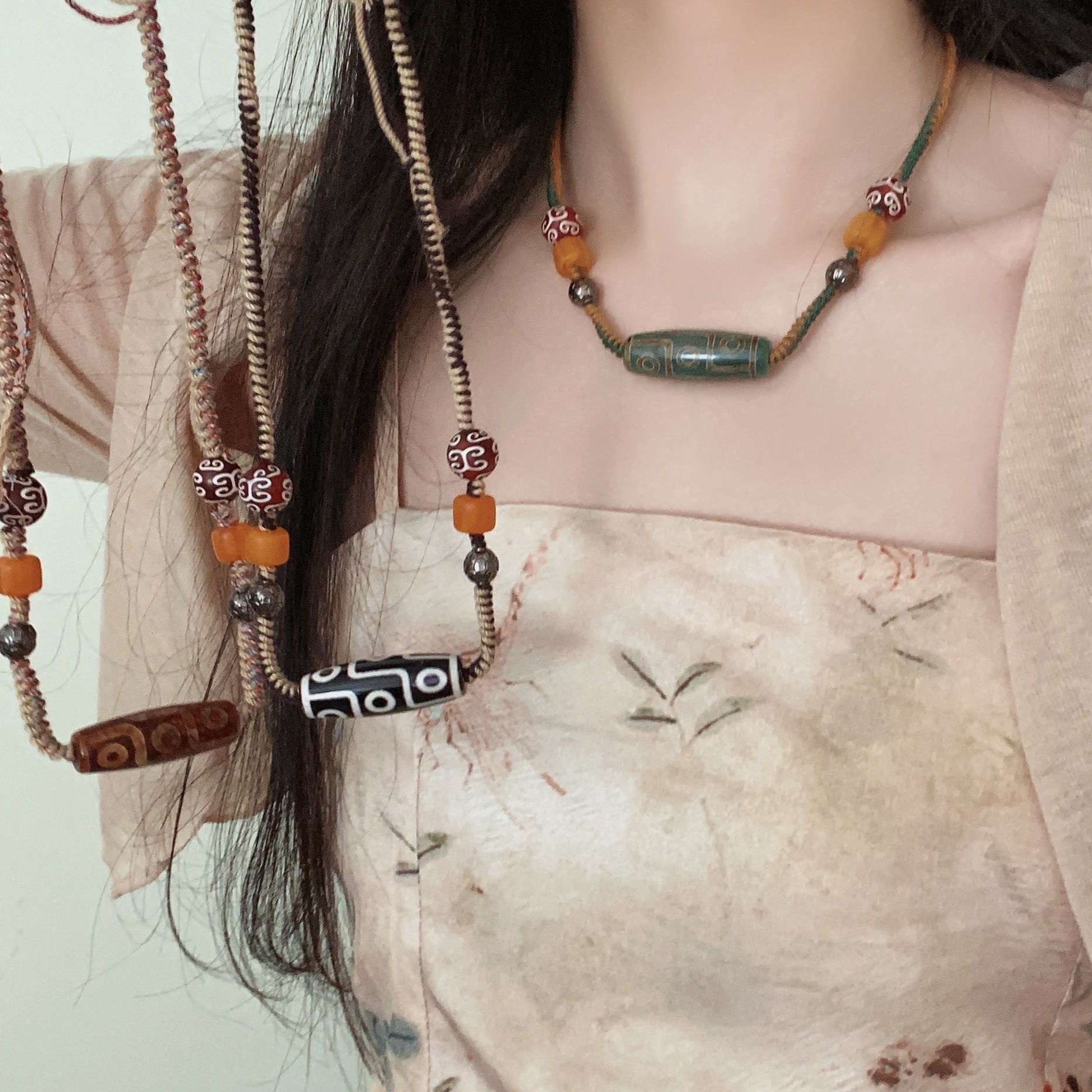 New Chinese-style Nine-eye Bead Necklace Women's Ethnic Style Retro Woven Woolen Chain Niche Retro All-match Clavicle Chain Trendy