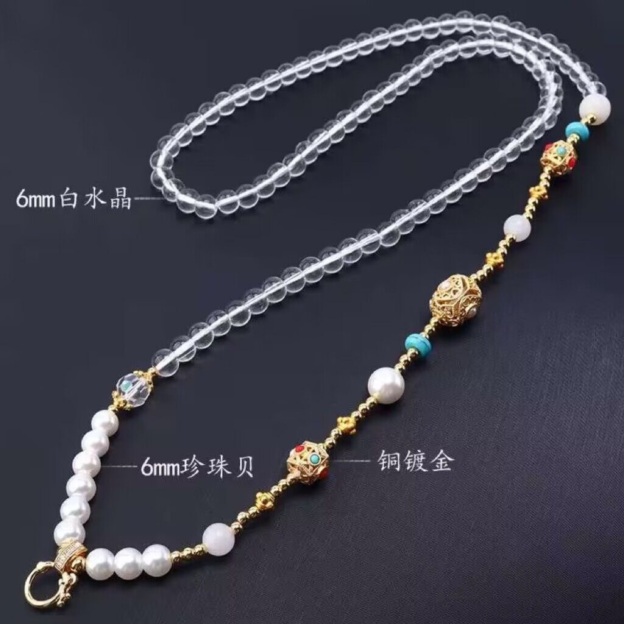 Crystal Bead Chain, Thai Buddha Amulet Chain, Thangka Hanging Chain, Sweater Chain, White Crystal Necklace, Crystal Beeswax Hanging Chain