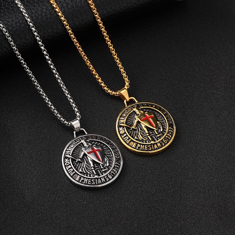 Foreign trade cross-border new vintage zinc alloy gold-plated western medieval knight templar pendant necklace jewelry wholesale