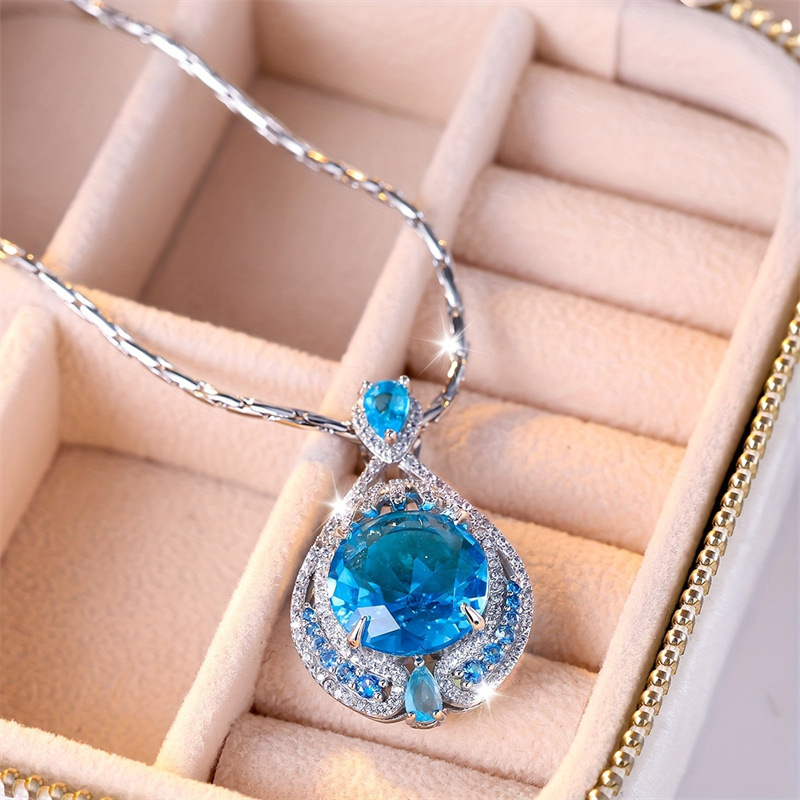 Cross-border high-end female necklace simple fashion color pendant Europe and the United States bright fireworks cut large gram blue color treasure wholesale