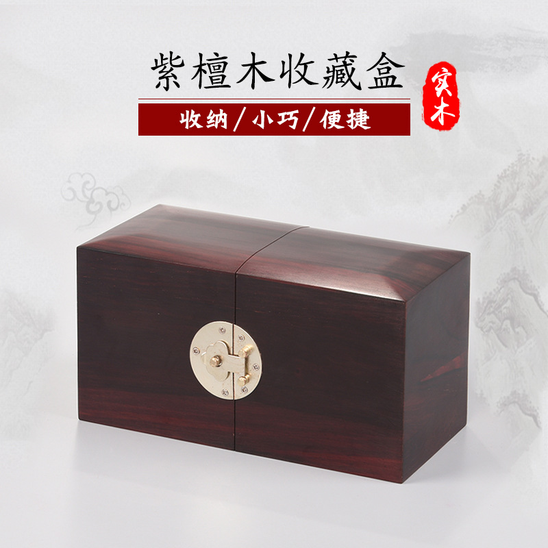 Large-Leaf Red Sandalwood Log Old Material Craftsman Jewelry Box Chinese Retro Lockable Storage Box Solid Wood Carving