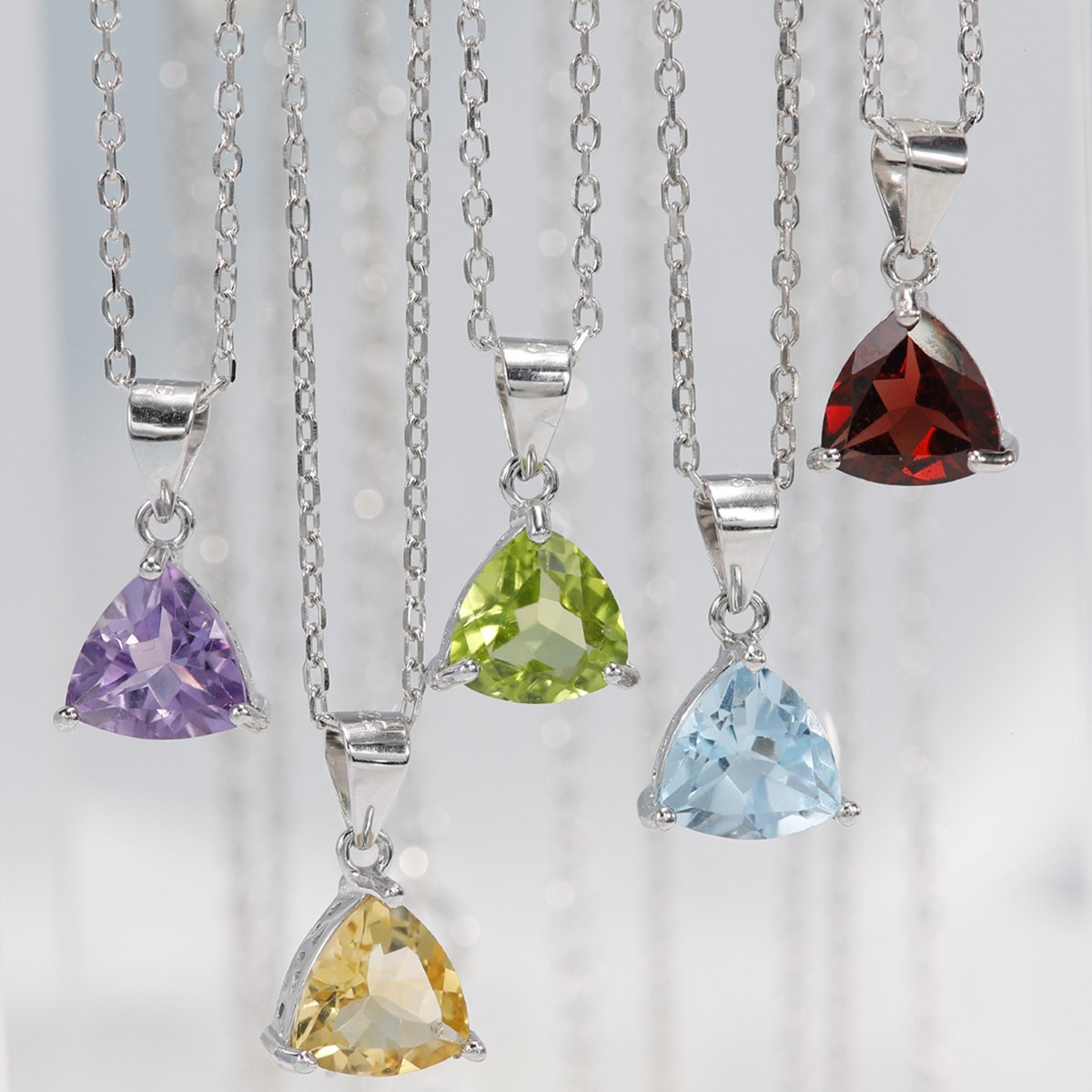 Cross-Border European and American Colorfuled Gemstone Triangle Pendant for Women, Simple Ins Style Stacked Clavicle Chain, Versatile Accessible Luxury Silver Necklace