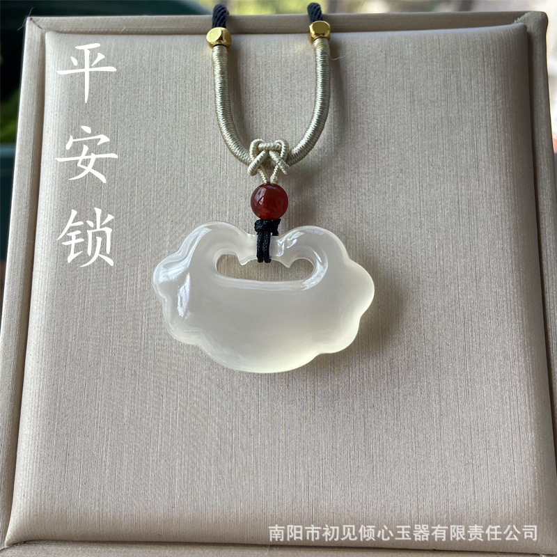 Natural Horse Material Chalcedony Long Life Lock Pendant for Men and Women Xiangyun Lock Agate Jade Pendant Jade Pendant Ruyi Ping An Lock
