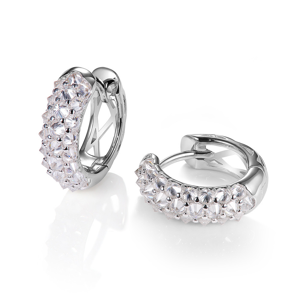 Cross-border Hot Sale S925 Sterling Silver Moissanite Earrings Light Luxury High-grade Anti-set Ear Ring Female Red/Green/Blue/White Ear Ring