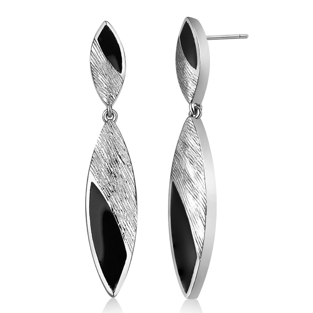 Cross-Border New Diamond-Shaped Silver and Black Brushed Earrings, Personalized Cool Style Earrings, Internet Celebrity Style Tassel Earrings