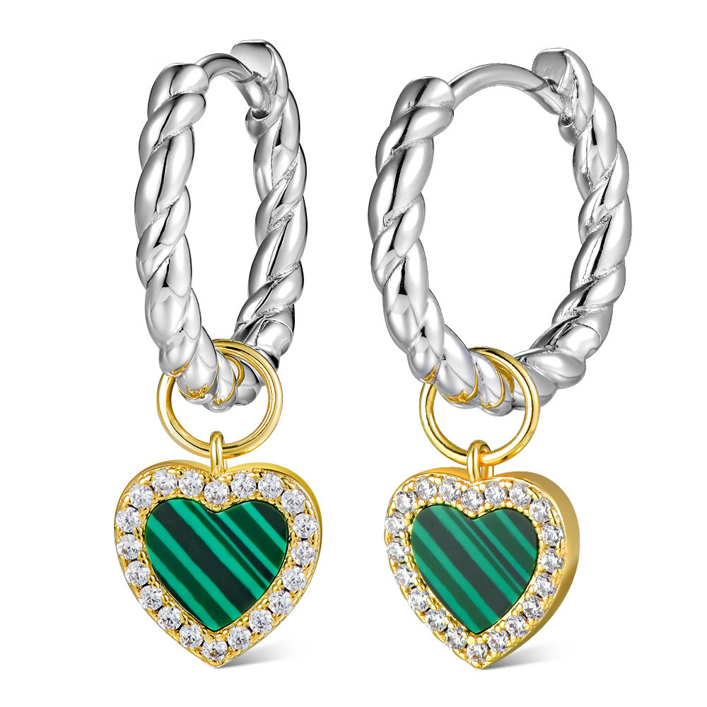 Cross-border Amazon Hot Diamond Earrings Green Love Niche Design Advanced 5A Zircon Earrings