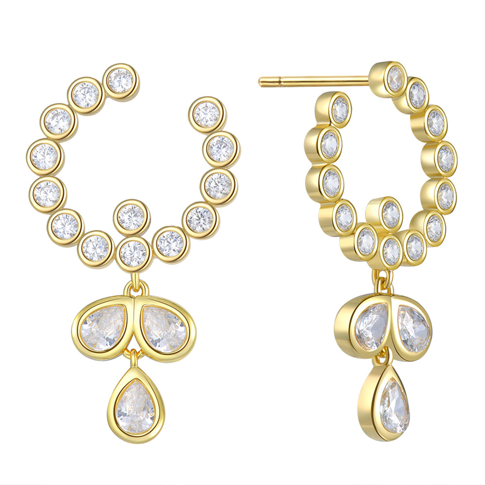 Cross-Border New Round Bag-Set 5A Zircon Earrings European and American High-Grade 18K Gold-Plated Earrings Wholesale