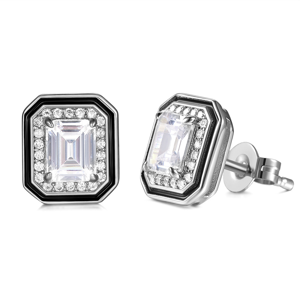 Cross-border Hot Sale Emerald Cut Seiko 5A Zircon Earrings Simulation Diamond Advanced Black Edge Super Flash Square Earrings