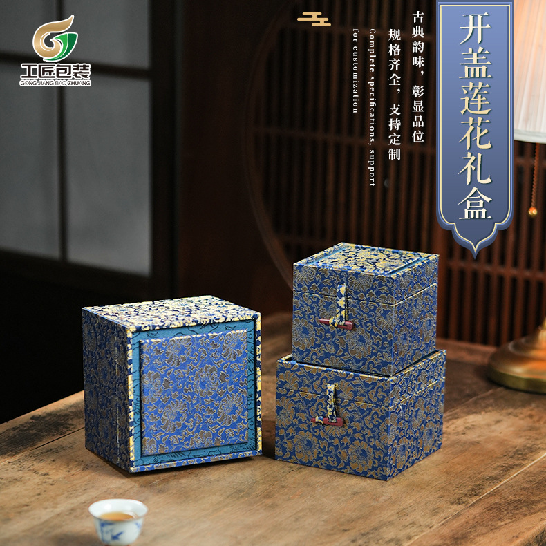 Lotus Brocade Box Fabric Tea Set Packaging Box Purple Sand Pot Gift Box Master Cup Brocade Box Jade Antique Storage Box