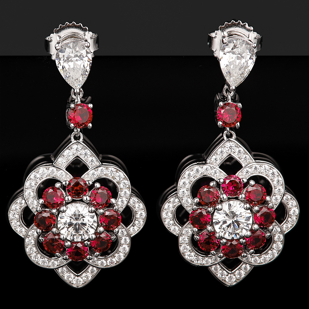 Cross-border Hot Selling 925 Silver Flower Earrings Simple Atmospheric Ice Flower Cut Pigeon Blood High Carbon Diamond Earrings Caibao Earrings