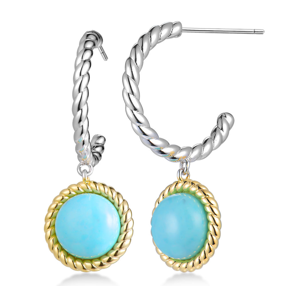 Cross-Border Retro Round Earrings, High-End Temperament Earrings, Anti-Blue Turquoise Earrings, European and American Earrings Wholesale