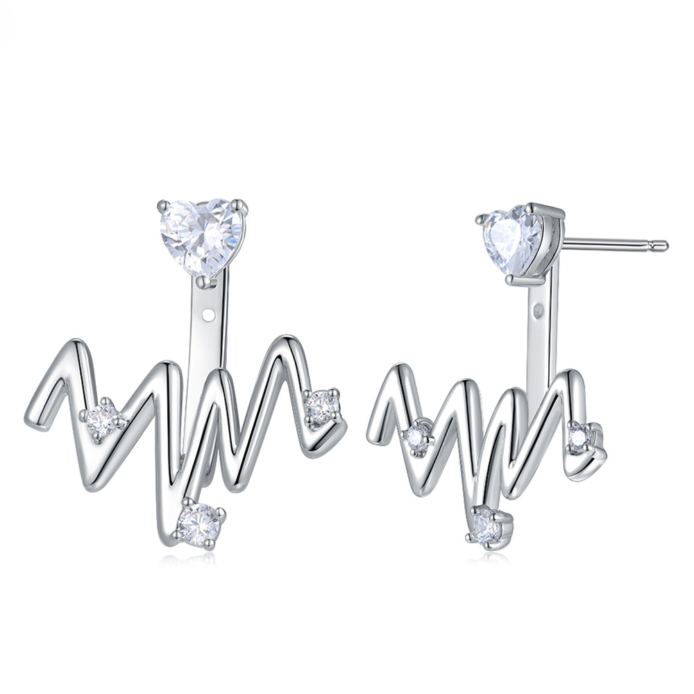 Cross-border Europe and the United States personality simple lightning wave earrings diamond 5A zircon heartbeat frequency earrings