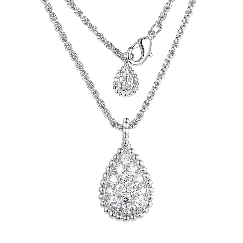 Cross-border New 5A Zircon Single Water Drop Necklace Personality Fashion Diamond Gold Silver Rose Gold Tri-color Necklace