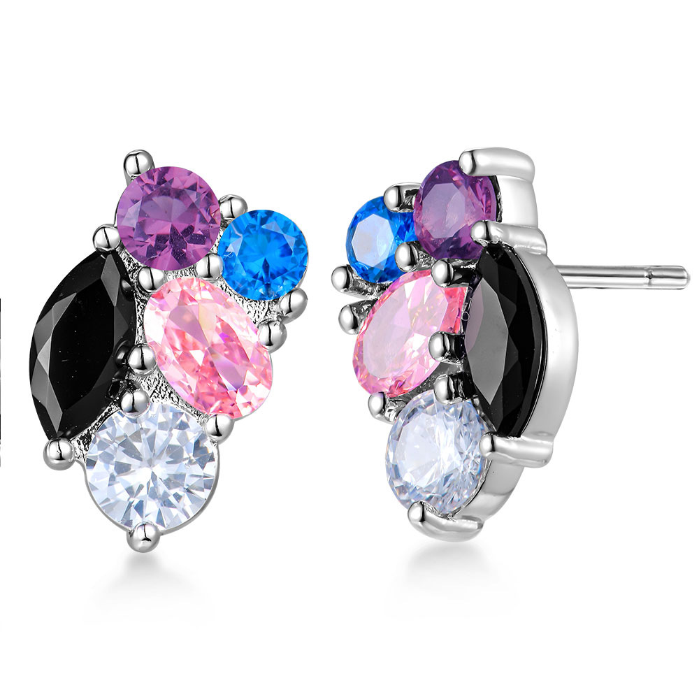 Cross-border new colored gemstone earrings exquisite temperament geometric earrings 5A zircon birthstone earrings wholesale