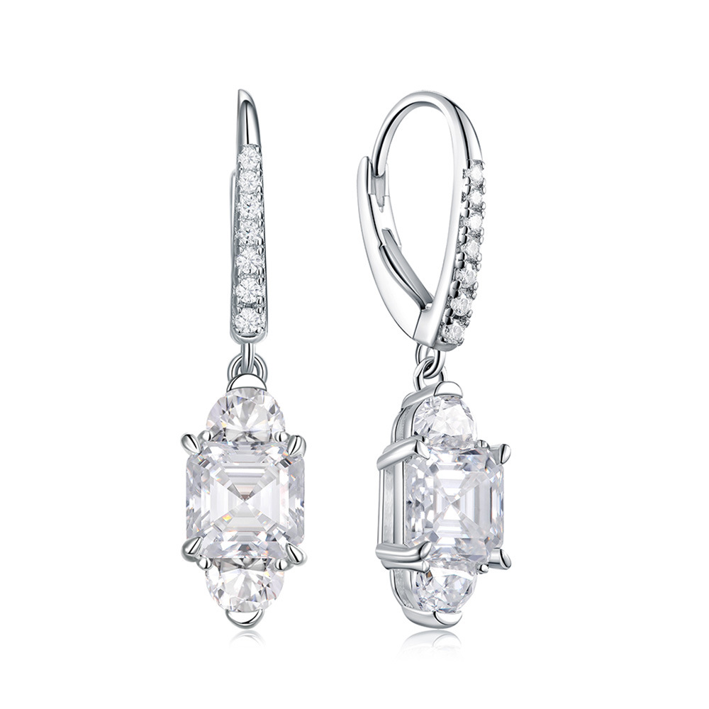 Cross-border hot sale new twenty -925 sterling silver ladies earrings square cut moissanite bright earrings