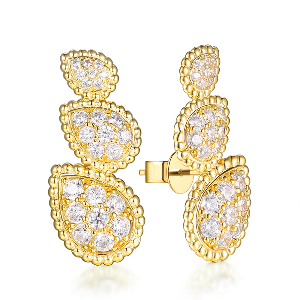 Cross-border foreign trade 5A zircon water drop earrings arranged personalized fashion diamond gold silver rose gold tricolor earrings
