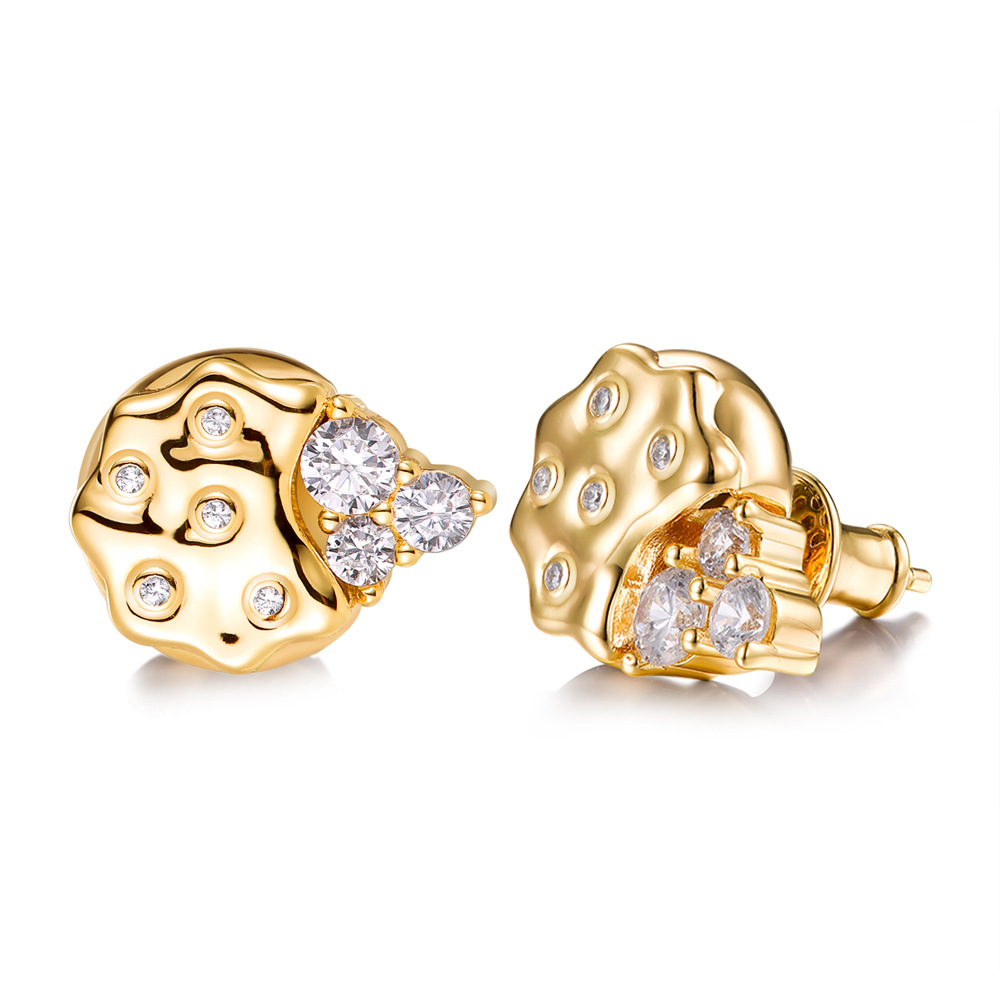Cross-Border New Textured Irregular Earrings Plated with 18K Gold and Diamond 5A Zircon Pleated European and American Earrings