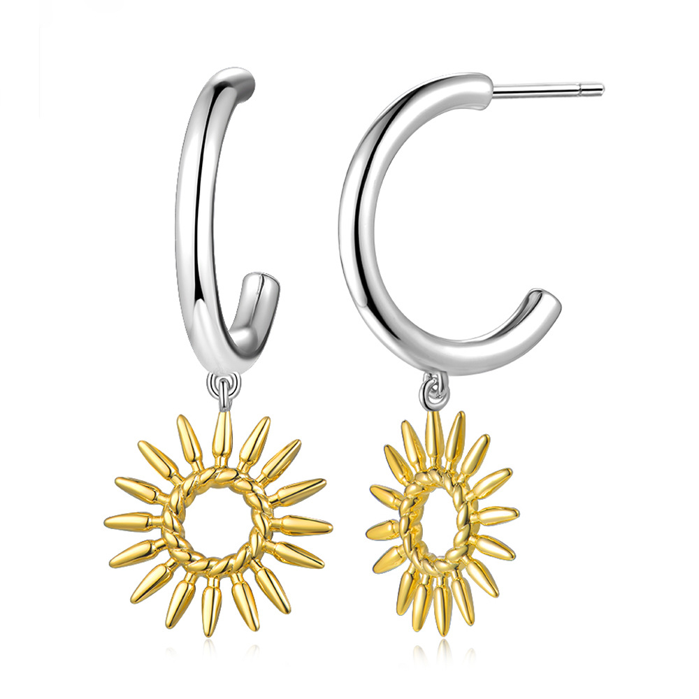 Cross border hot sale sunflower moissanite earrings 925 sterling silver 18k gold plated color separation earrings