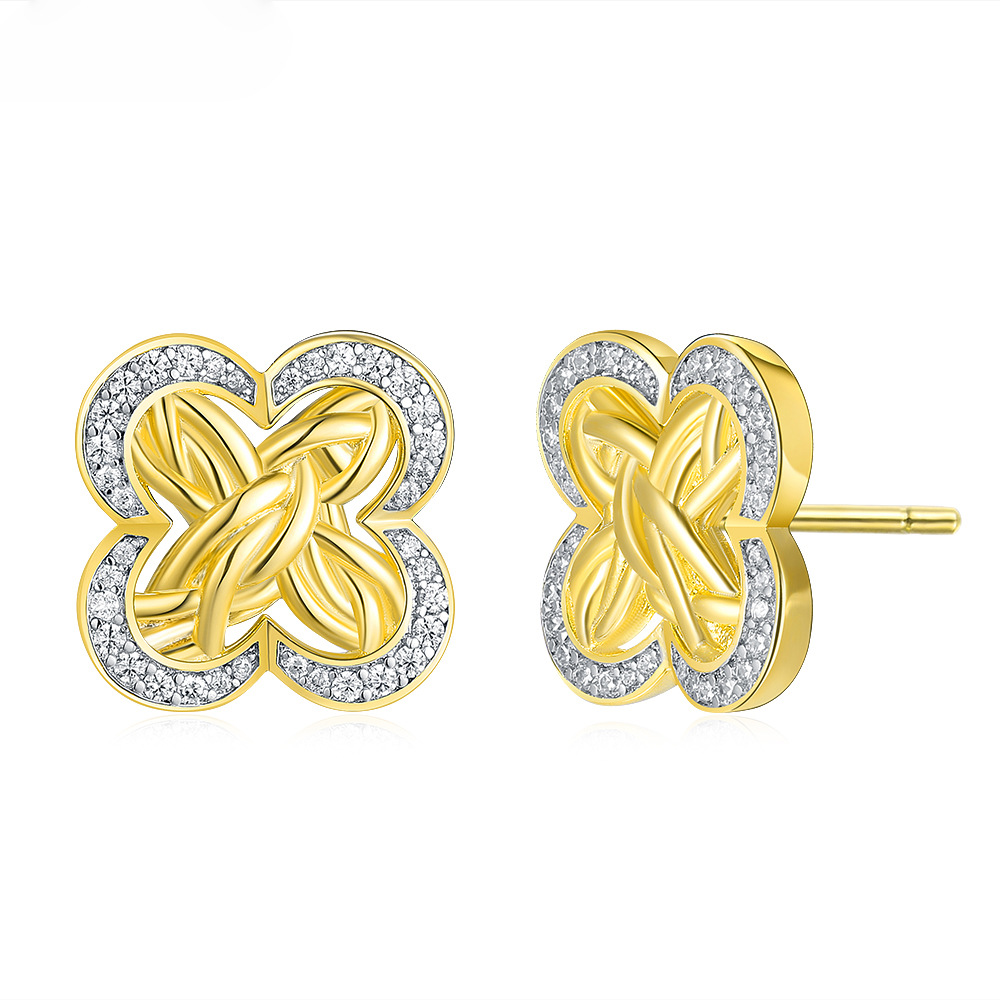 Cross-Border Live Broadcast Hot-Selling Four-Leaf Clover Earrings Plated with 18K Gold, Exquisite Luxury Diamond-Encrusted 5A Zircon Earrings