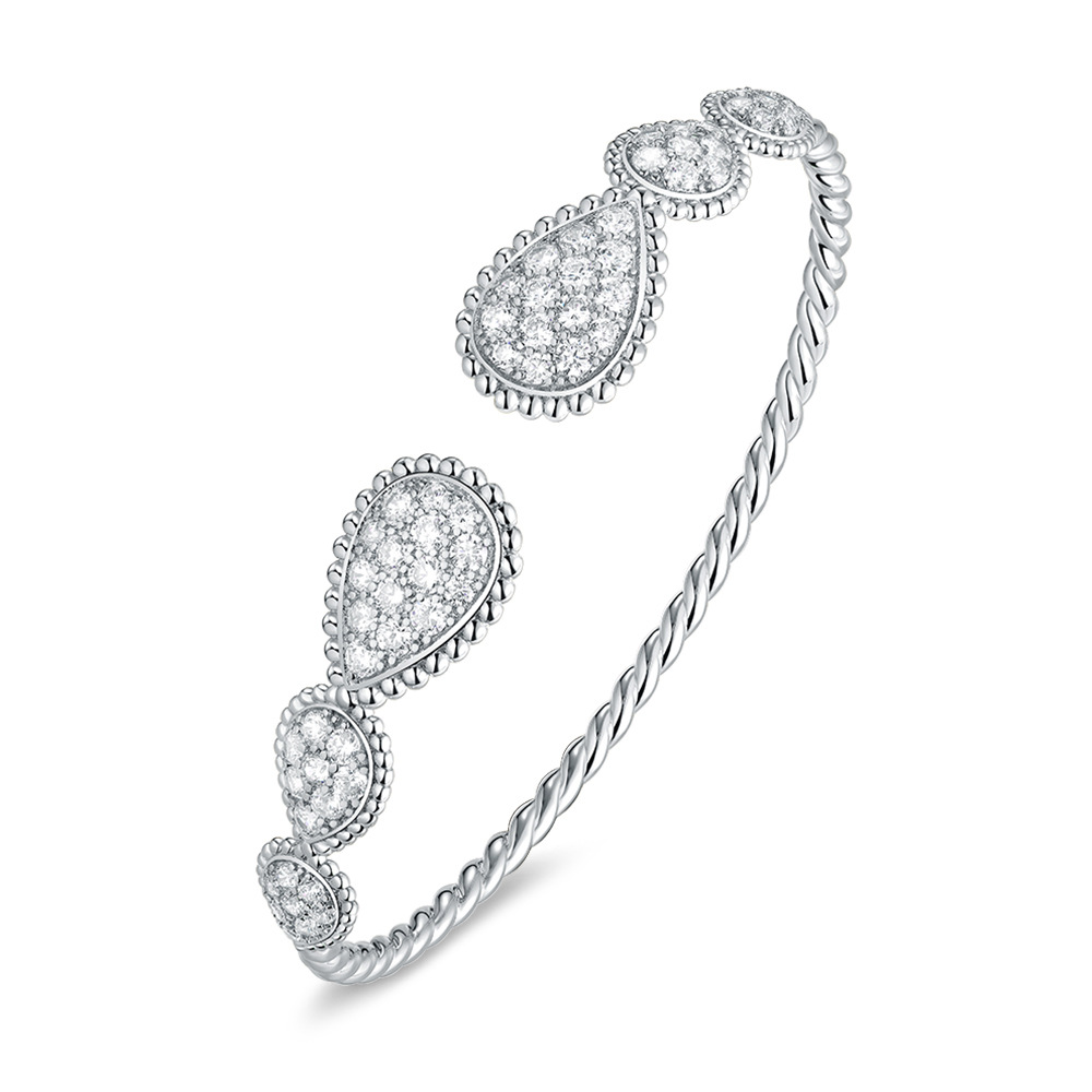 Cross-border Explosions Full Diamond Water Drops Open Bracelet Women's Light Luxury Niche Tricolor Water Drops 5A Zircon Personalized Bracelet