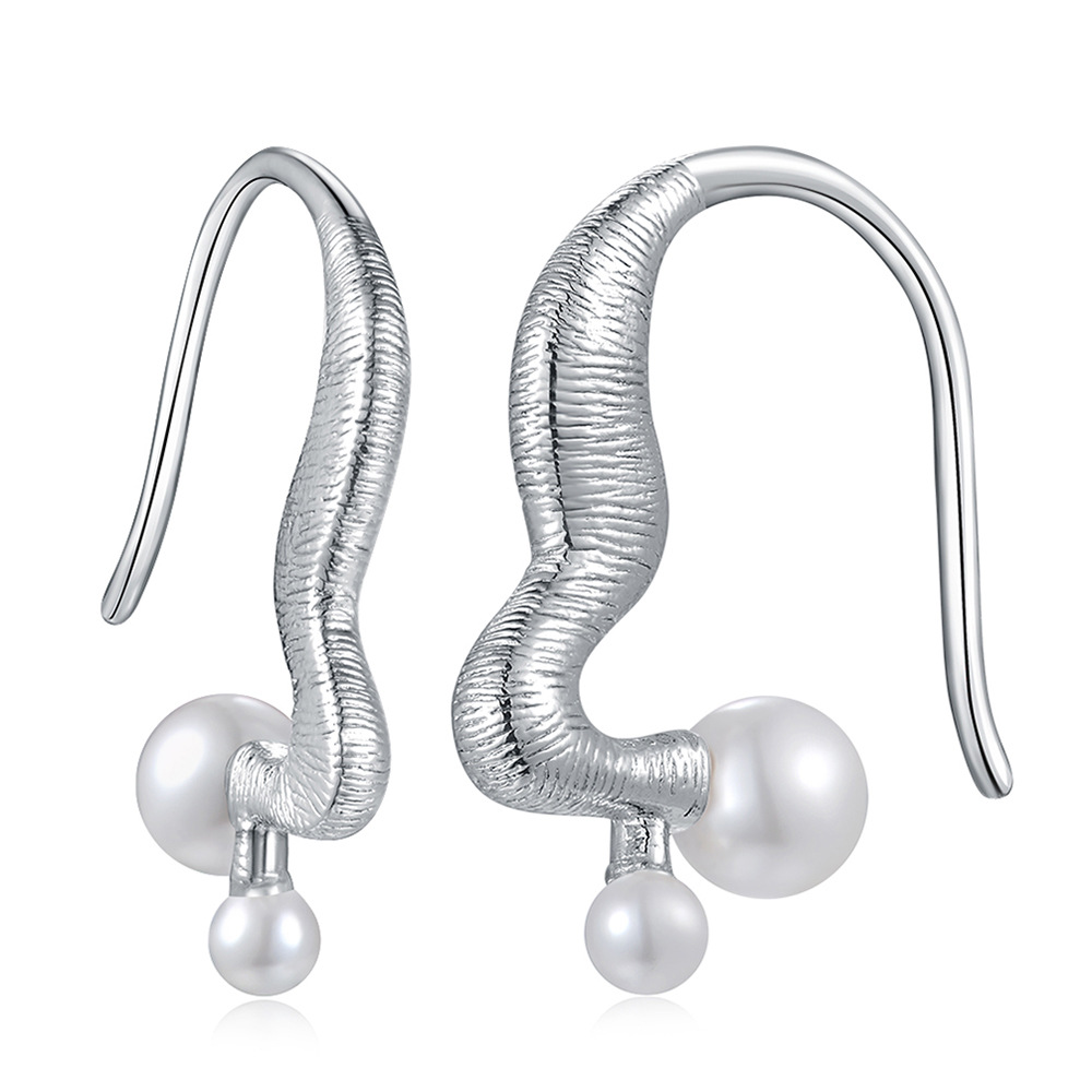 Cross-border S925 Sterling Silver Pin Pearl Earrings Ins Wind Twisted Irregular Ear Hook Wave Line Earrings