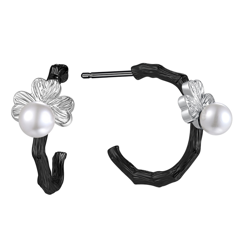 Cross-border Live Hot S925 Sterling Silver Silver Black Color Matching Pearl Earrings All-match Elegant Texture Earrings European and American New