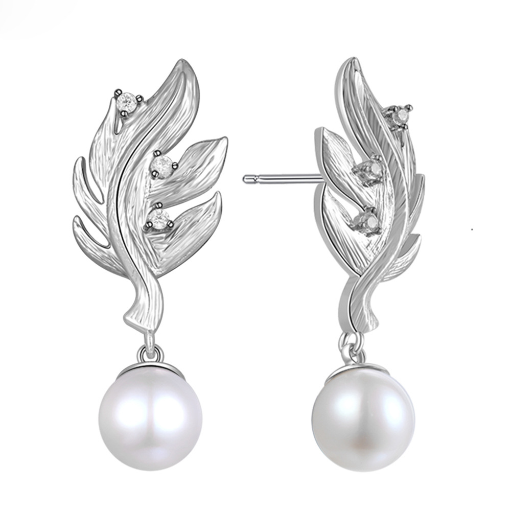 Cross-border Live Hot S925 Silver Bamboo Leaf Pearl Earrings Simple Joker Diamond 5A Zircon Earrings European and American New
