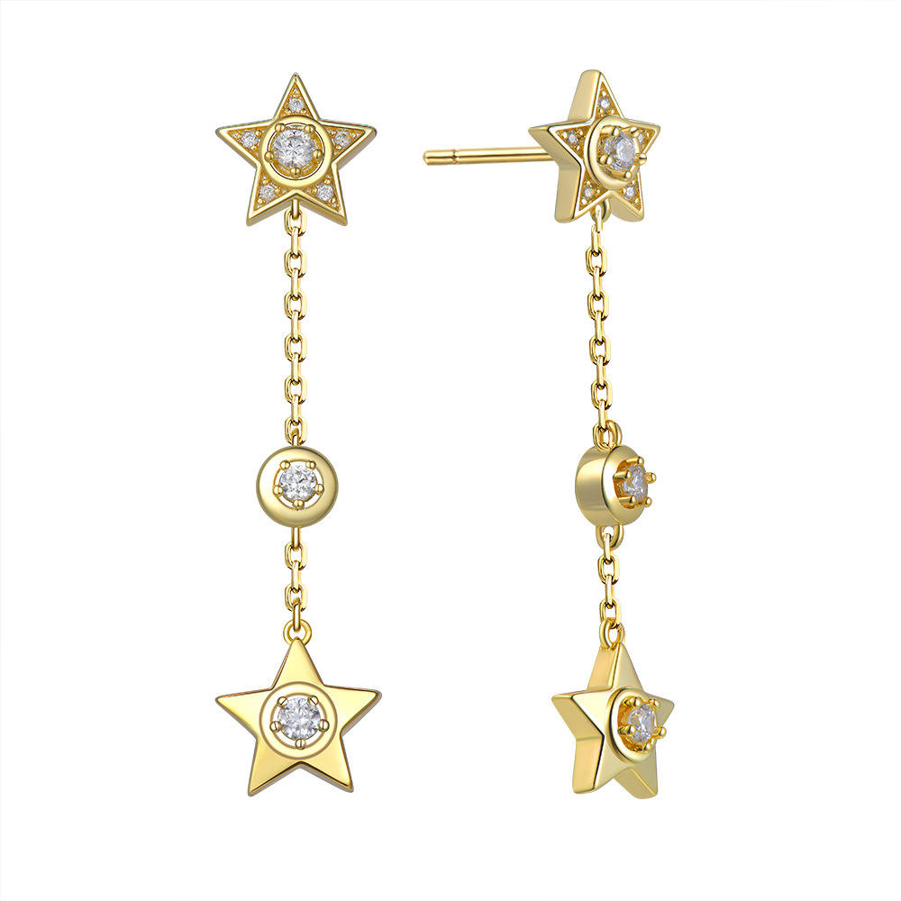 Cross-Border New Star Diamond Earrings Plated with 18K Gold 5A Zircon Five-Pointed Star Earrings Tassel Earrings