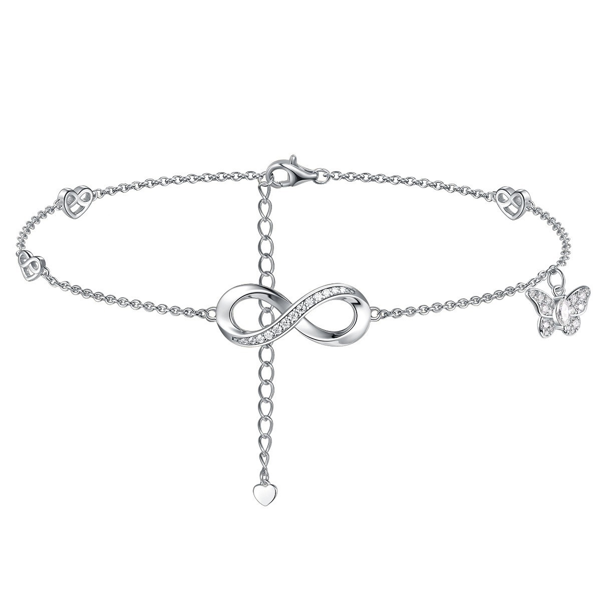 925 Sterling Silver Moissanite Infinity Heart-Shaped Anklet for Women 8-Shaped Twisted European and American Cross-Border Amazon Foot Jewelry