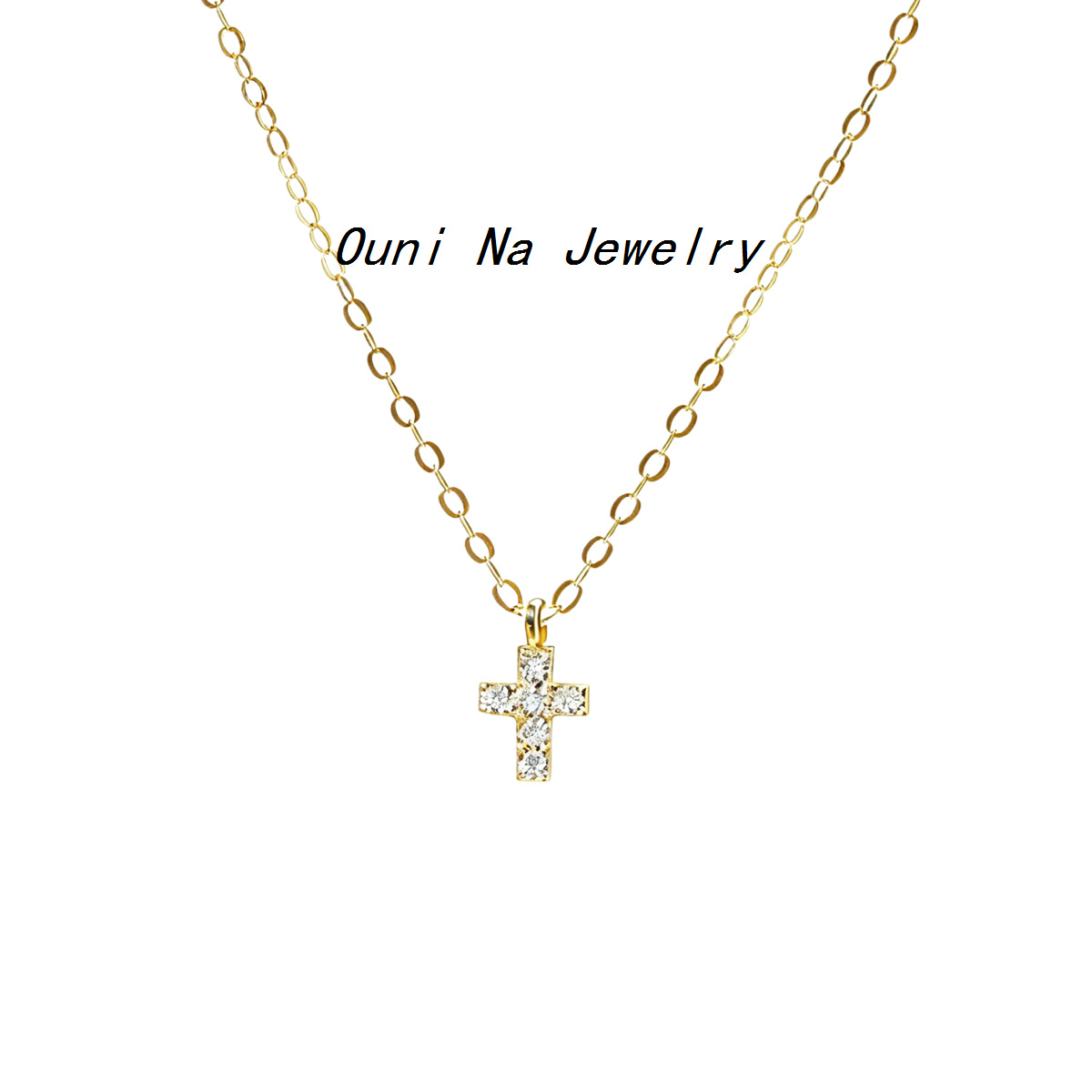 S925 Sterling Silver Plated 14k Gold Mini Diamond Cross Necklace Women's Japanese Niche Slim Clavicle Chain