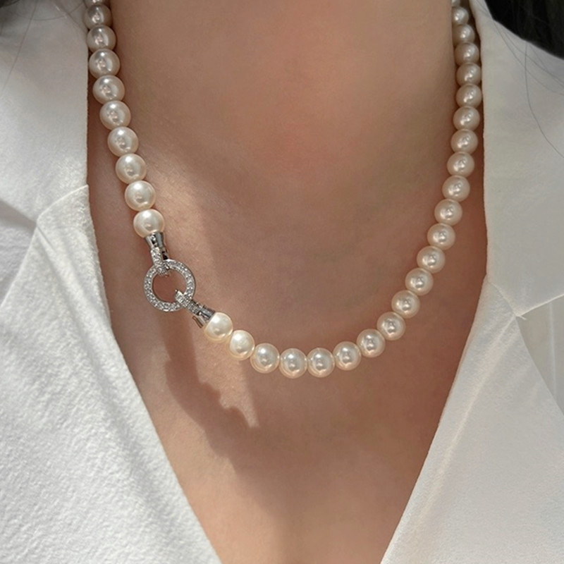 Magnetic Buckle Shijia Pearl Necklace Women's Hemp Fashion Accessible Luxury Niche Necklace High-End Elegant Shell Bead Necklace